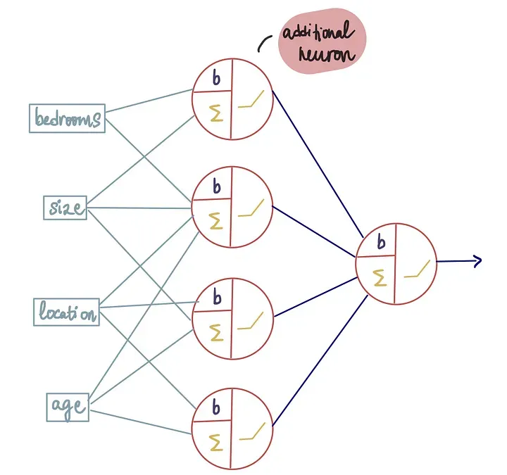 它只有一个神经元,就像人的大脑一样,只有当神经元协作时,它们才能做出更有影响力的决策并以更高的精度处理数据。