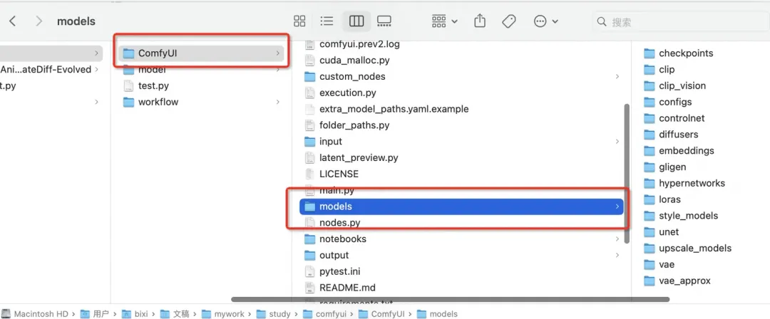 在下载完模型后,我们需要将模型导入到 ComfyUI 的 models 目录下,这样 ComfyUI
