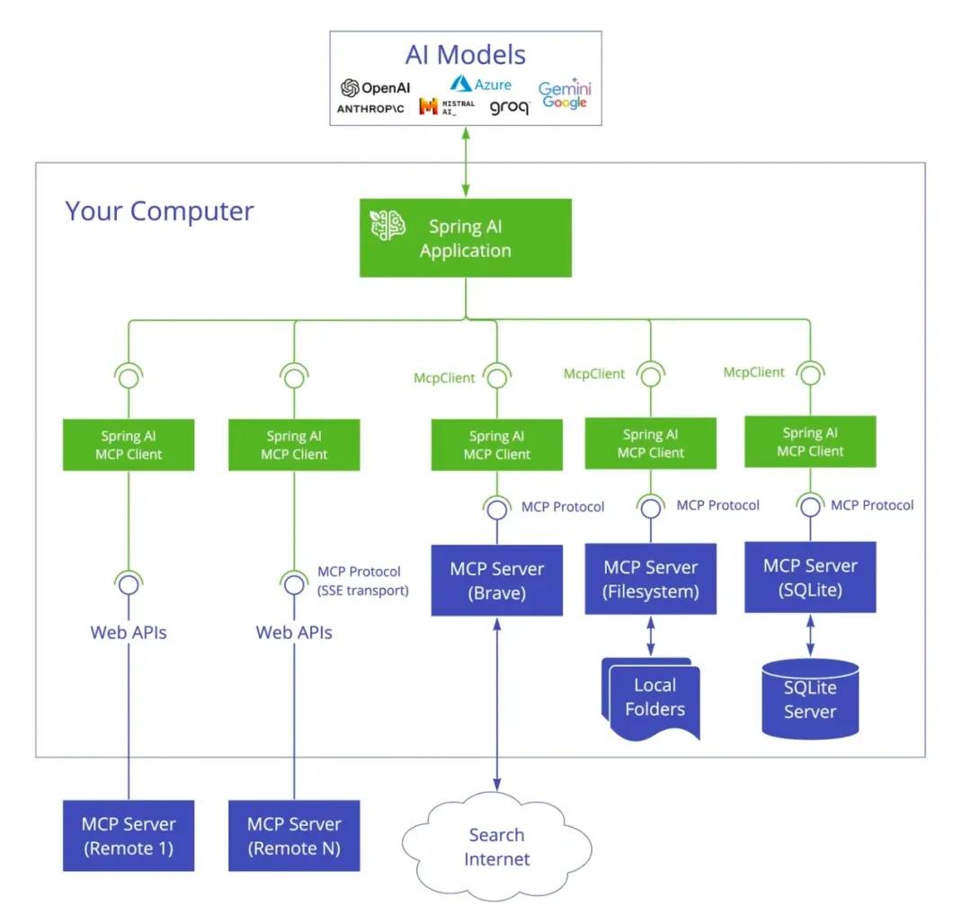Spring AI MCP 为模型上下文协议提供 Java 和 Spring 框架集成。它使 Spring