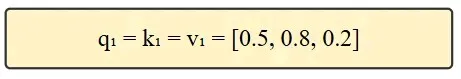 此处,q(查询向量)代表当前单词(如示例中的“I”),k(键向量)代表所有单词的嵌入向量(包括当前单词自身,即“I”)。