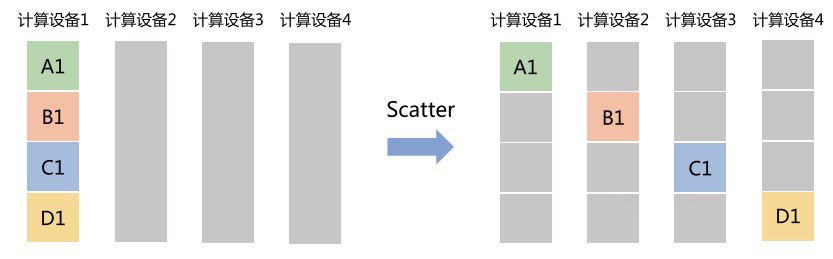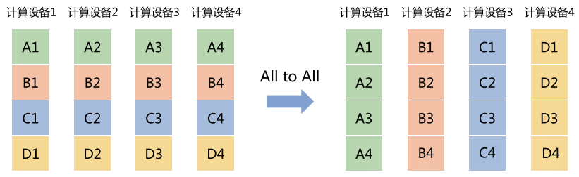 - 每个节点把数据切分后,分别发给其他所有节点。