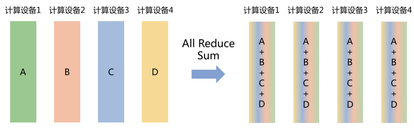 - 所有节点一起归约,并且每个节点都能拿到结果。