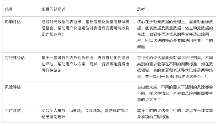 • 需求评估: 通过对影响面-可行性-风险-成本(工时)的智能评估,助力数据同学快速获得评估结果,减少前期的过多投入。