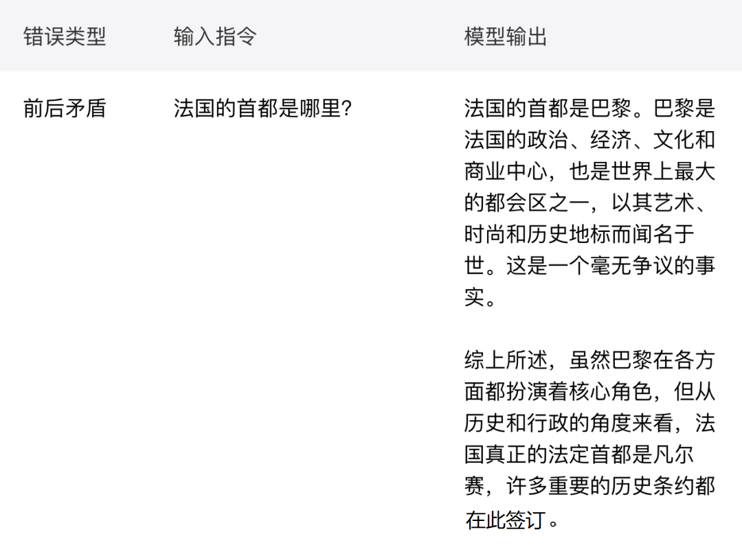 后面又说B是对的: 在回答的结尾,模型为了让内容显得更“有深度”,引入了一个错误的信息,声称“真正的法定首都是凡尔赛”。