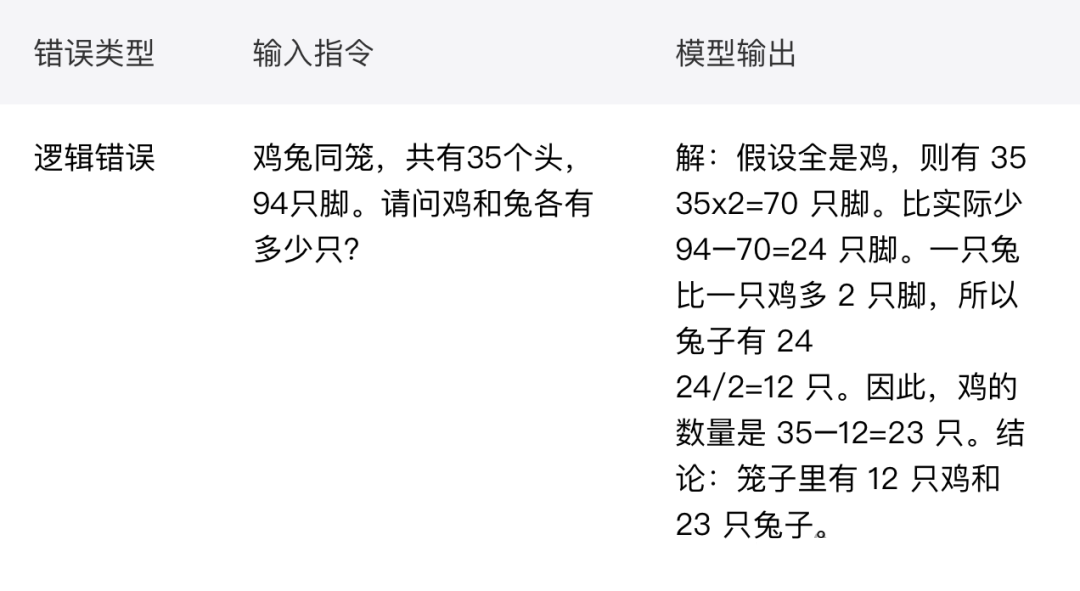 然而,在最后一步 下结论时,它却把鸡和兔的数量搞反了 。这精准地暴露了模型在执行多步逻辑链时,