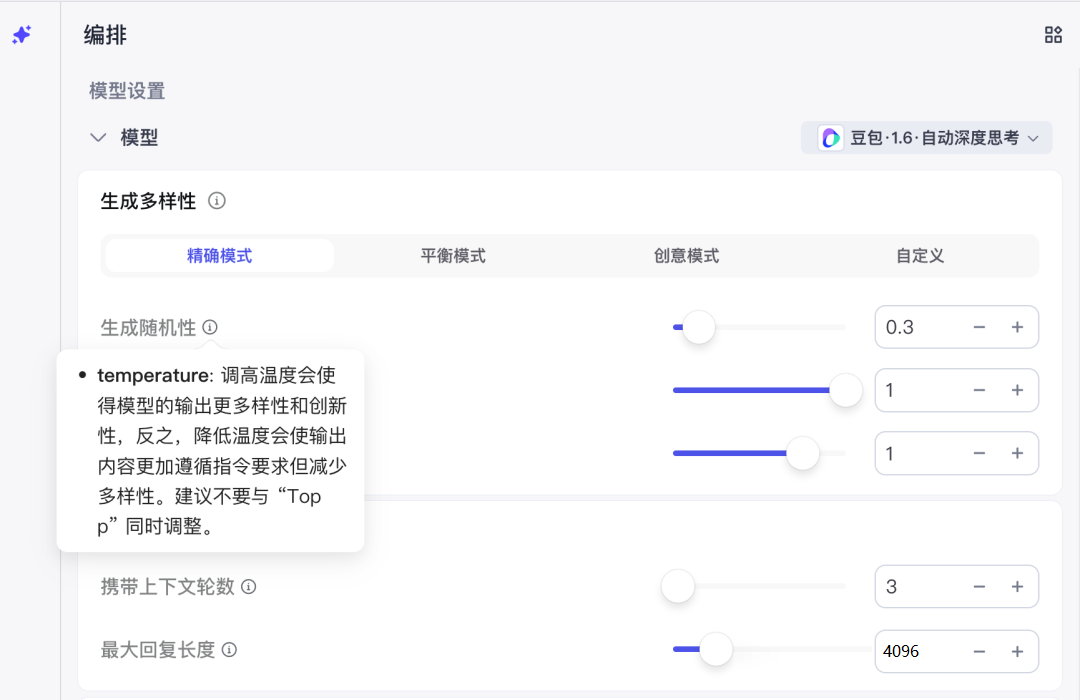 这给了我们一个非常实用的排查方法:如果你在调用API时,发现模型输出的内容越来越离谱,胡说八道得厉害, 不妨先去检查一下,是不是不小心把 温度系数 (Temperature)的值调得太高了!