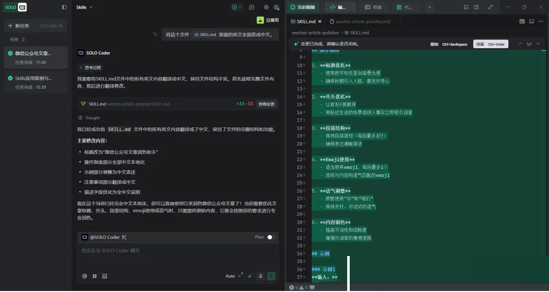 AI会创建一个叫wechat-article-polisher的Skill,核心内容: