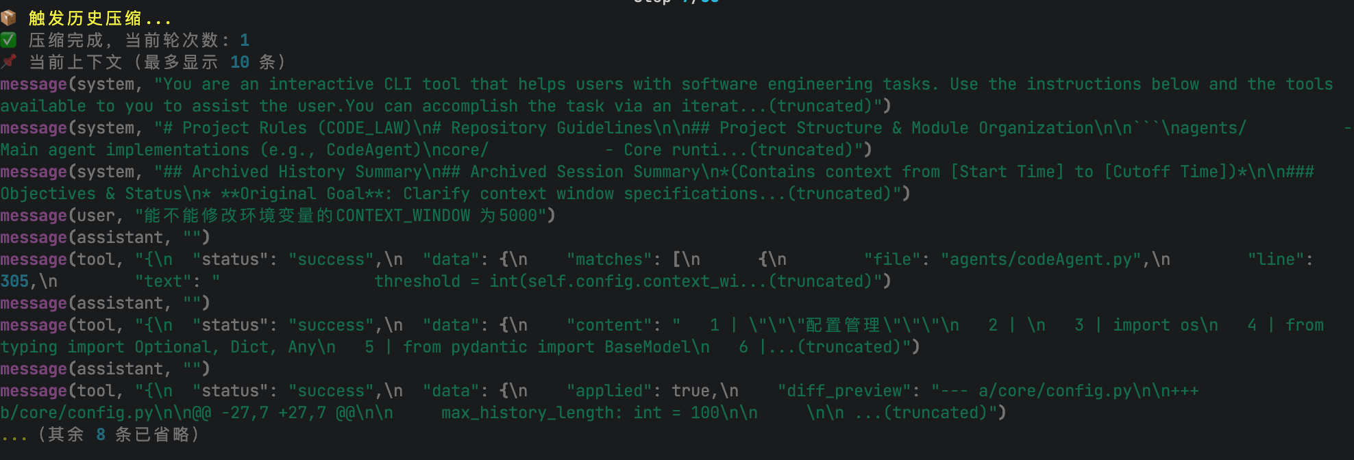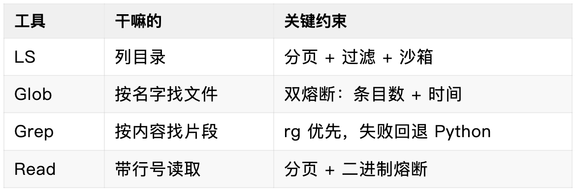 为啥?工具输出一旦太长,下一步提示词就会变脏,模型很容易跑偏。这套配置后来肯定不够,但 V0 阶段,它让问题 可复现、可调试 。