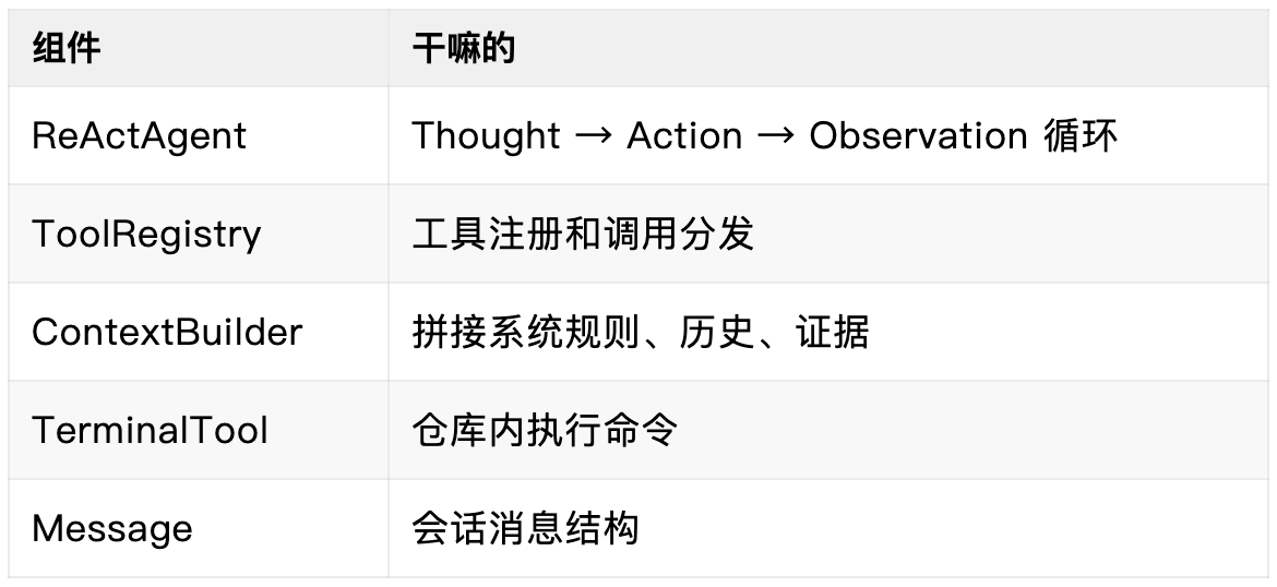 Hello-Agent 的底子正好够用—— ReActAgent 、ToolRegistry、ContextBuilder 这些核心组件都是现成的。我的策略很简单: 先复用,再改造 。