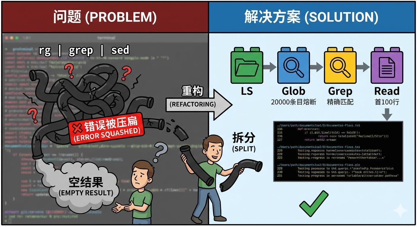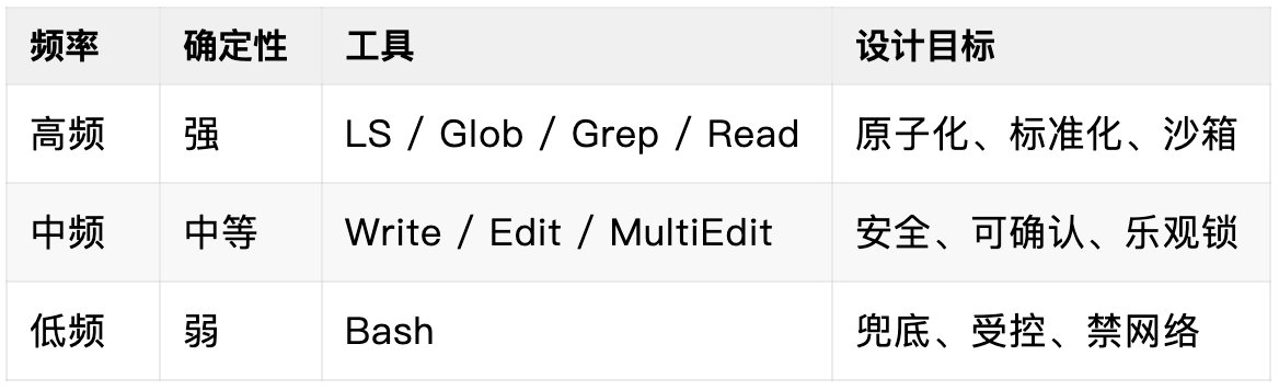 我当时想的是"先把能力放开",让模型能直接写复杂 shell,效率优先。