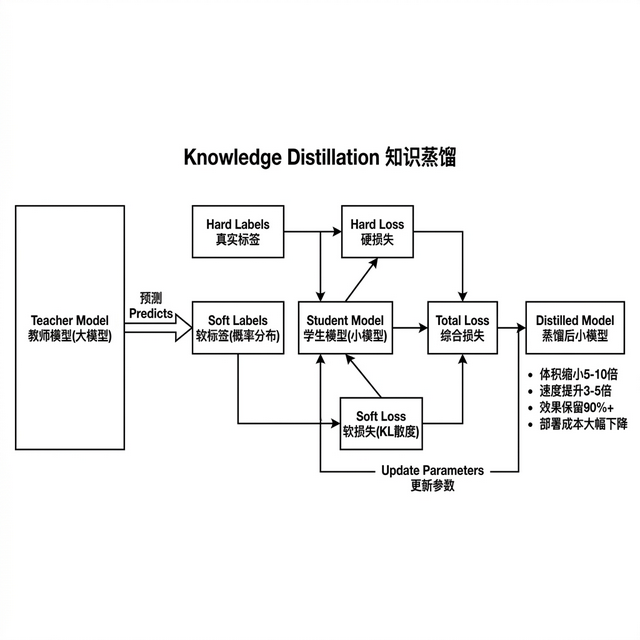 知识蒸馏就是解决这个问题的标准操作。核心思路,用 大模型 教小模型。先用 GPT-4 对大量问题生成高质量回答,再拿这些回答当训练数据去训练一个小得多的模型。