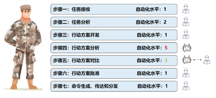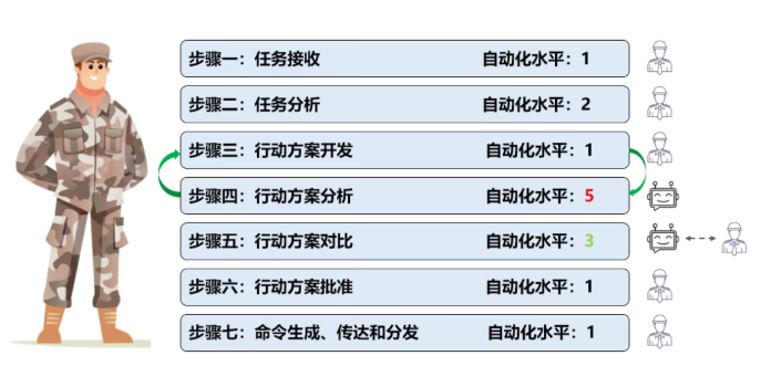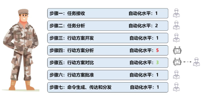 为此,新的人机协作模型的解决方案, 战略性地为军事决策流程的不同步骤,分配适当的自动化等级 :