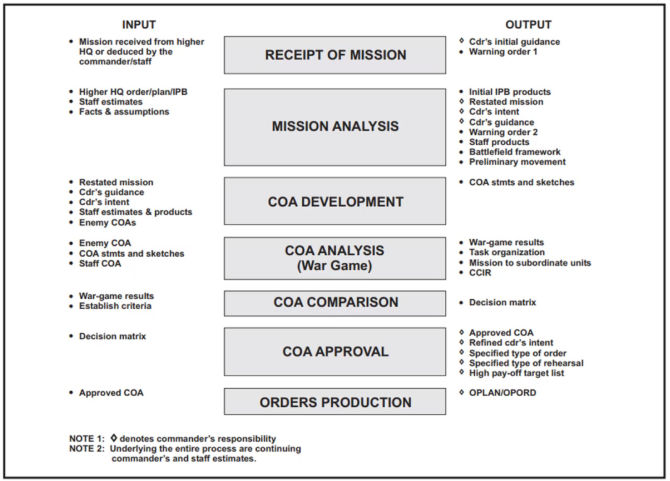在军事领域,这一过程被美军军事条令制度化为一个标准的 军事决策流程。 它包含如下七个步骤: