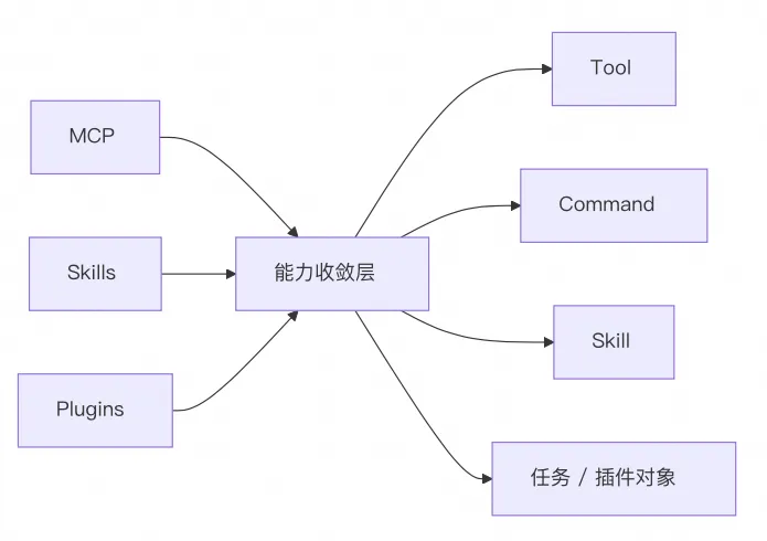 把这三层放在一起看,Claude Code 扩展架构最重要的判断就出来了:外部来源可以很多样,但内部对象必须尽量少。
