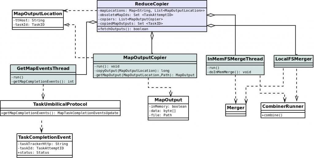 就是从执行各个Map任务的服务器那里,收罗到map的输出文件。拷贝的任务,是由ReduceTask.ReduceCopier类来负责。