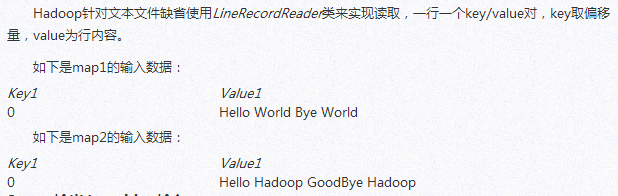 Map-Reduce框架的运作完全基于<key,value>对,即数据的输入是一批<key,value>对,生成的结果也是一批<key,value>对,只是有时候它们的类型不一样而已。Key和value的类由于需要支持被序列化(serialize)操作,所以它们必须要实现Writable接口,而且key的类还必须实现WritableComparable接口,使得可以让框架对数据集的执行排序操作。