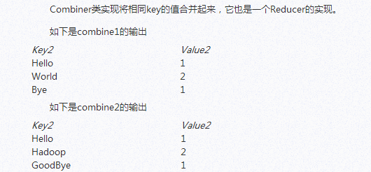 运行于Hadoop的MapReduce应用程序最基本的组成部分包括一个Mapper和一个Reducer类,以及一个创建JobConf的执行程序,在一些应用中还可以包括一个Combiner类,它实际也是Reducer的实现。