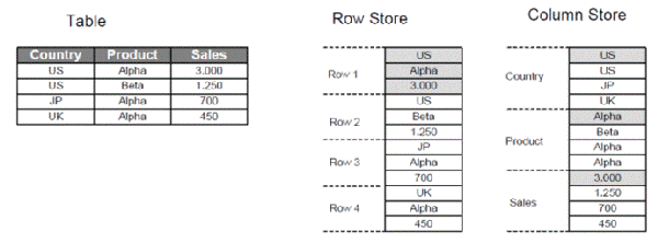 SAP HANA是SAP公司的一个基于记忆的存储系统。它的特点是组织一个系统最佳化的分析任务,比如OLAP。如果所有数据在系统内存内,那么重中之重是突破内存和CPU缓存之间的瓶颈。为了最小化缓存缺失,处理带有时间的连续数据是更有利的,这意味着分析许多OLAP时列结构表可能更有利。