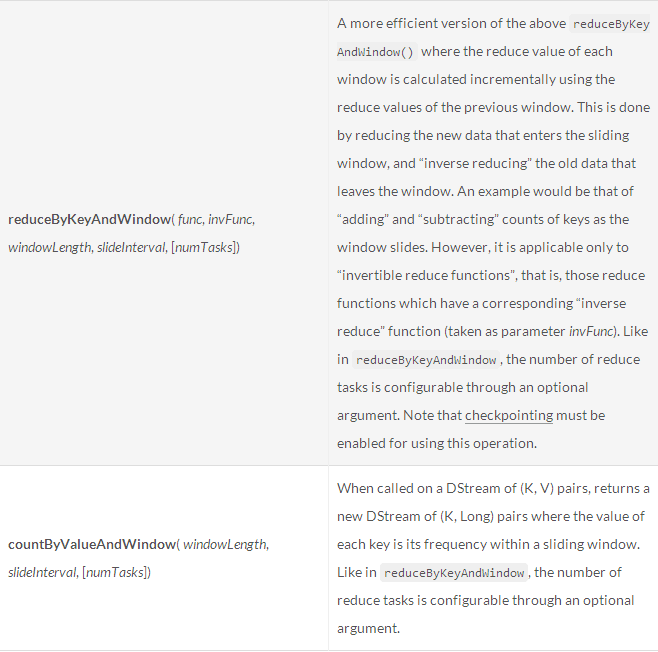 对于window-based操作(如reduceByWindow、reduceByKeyAndWindow等)和state-based操作(如updateStateByKey),DStream将被隐式地持久化,因此你就不必自己手动调用persist()了哦。