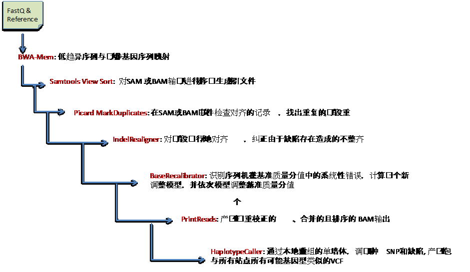 基因序列分析工作流以 GATK 的最佳实践为标准。它以最初的 FASTQ 文件为输入,从 BWA-mem