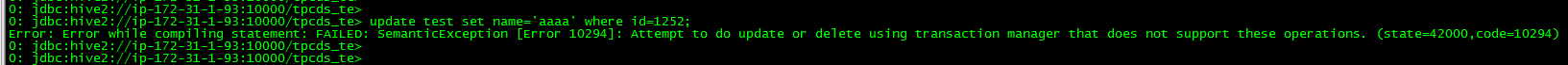 在未配置hive的Transaction和ACID时,不支持update操作。