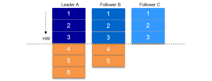 上面一节还涉及到一个概念,即HW。HW俗称高水位,HighWatermark的缩写,取一个partition对应的ISR中最小的LEO作为HW,consumer最多只能消费到HW所在的位置。另外每个replica都有HW,leader和follower各自负责更新自己的HW的状态。对于leader新写入的消息,consumer不能立刻消费,leader会等待该消息被所有ISR中的replicas同步后更新HW,此时消息才能被consumer消费。这样就保证了如果leader所在的broker失效,该消息仍然可以从新选举的leader中获取。对于来自内部broKer的读取请求,没有HW的限制。