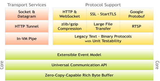 - 功能丰富,内置了多种数据编解码功能、支持多种网络协议。