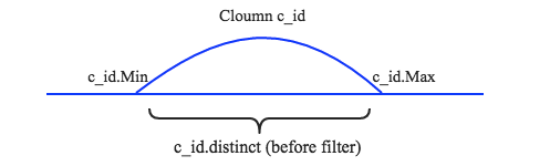 1. 假设已知C列的最小值c_id.Min、最大值c_id.Max以及总行数c_id.Distinct,同时假设数据分布均匀,如下图所示: