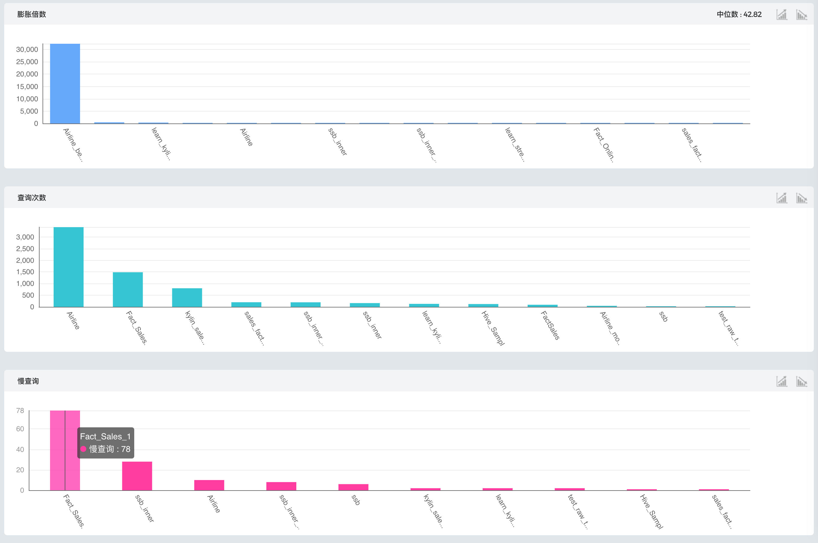 Kylin中的各项统计指标,并进行智能化评分及规则,有助于快速定位查询、构建瓶颈和寻找解决方案。