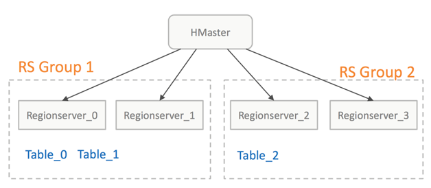 Group简单概括是指通过分配一批指定的RegionServer列表,成为一个RS Group,每个Group可以按需挂载不同的表,并且当Group内的表发生异常后,Region不会迁移到其他的Group。这样,每个Group就相当于一个逻辑上的子集群,通过这种方式达到资源隔离的效果,降低管理成本,不必为每个高SLA的业务线单独搭集群。