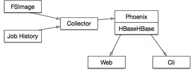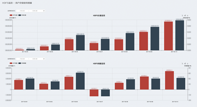 用于监控Hadoop集群的资源使用(Namenode,Yarn container使用等),关系数据库在时间维度过程以后会产生各种性能问题,同时我们又希望可以通过SQL做一些分析查询,所以使用Phoenix,使用采集程序定时录入数据,生产成报表,存入HBase,可以在秒级别返回查询结果,最后在前端做展示。