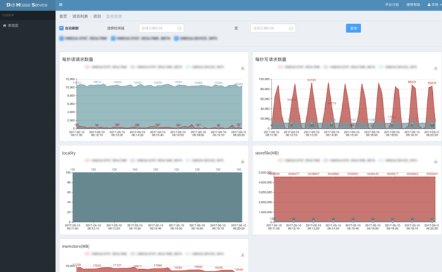 HBase自带的jxm信息会汇总到Region和RegionServer级别的数据,管理员会经常用到,但是用户却很少关注这个级别。根据这种情况我们开发了HBase表级别的监控,并且会有权限控制,让业务RD只能看到和自己相关的表,清楚自己项目表的吞吐及存储占用情况。