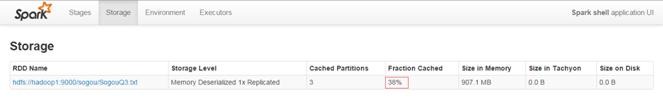 整个作业的运行速度为34.14秒,比没有缓存提高了一个数量级。由于刚才例子中数据只是部分缓存(缓存率38%),如果完全缓存速度能够得到进一步提升,从这体验到Spark非常耗内存,不过也够快、够锋利!