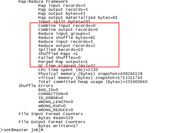 日志中可以看到作业的一些运行情况,例如map任务数量,reduce任务数量,以及输入输出的记录数,可以看到跟实际情况完全吻合。