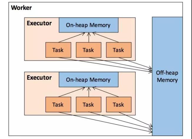 为了进一步优化内存的使用以及提高 Shuffle 时排序的效率,Spark 引入了堆外(Off-heap)内存,使之可以直接在工作节点的系统内存中开辟空间,存储经过序列化的二进制数据。利用