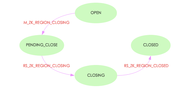 REGION_ CLOSING事件,Region就会从OPEN状态迁移到PENDING_CLOSE状态,而发生RS_ZK