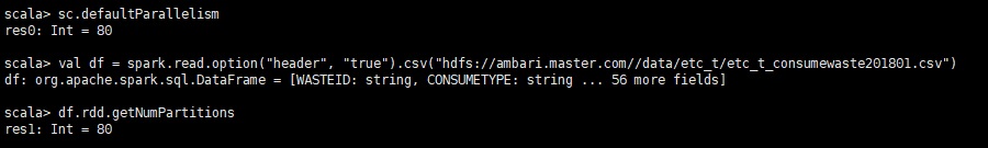 大文件(block较多):df的分区数 = max(hdfs文件的block数目, sc.defaultParallelism)