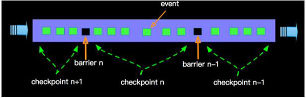 Apache Flink Checkpointing的内部实现会利用 Barriers,StateBackend等后续章节会详细介绍的技术来将数据的处理进行Marker。Apache
