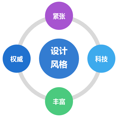 匹配图形的同时,还要考虑展示的平台。由于客户是投放在大屏幕上查看,我们对大屏幕的特点进行了分析,比如面积巨大、深色背景、不可操作等。依据大屏幕的特点,我们对设计风格进行了头脑风暴:它是实时的,有紧张感;需要新颖的图标和动效,有科技感;信息层次是丰富的;展示的数据是权威的。