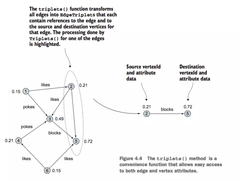 其中triplets()返回的结果是EdgeTriplet[VD,ED],EdgeTriplet[VD,ED]的属性接口有: