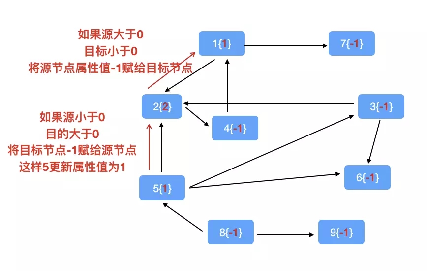 主要是用于团体检测,LPA能够以接近线性复杂度去检测一个大规模图中的团体结构,主要思想是给所有顶点中的密集连接组打上一个唯一标签,这些拥有相同标签的组就是所谓的团体