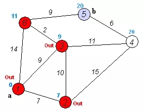 (1)首先初始化图,把起始目标节点属性值设置成0,其他的节点设置成正无穷,同时把节点状态全部设置成未激活状态