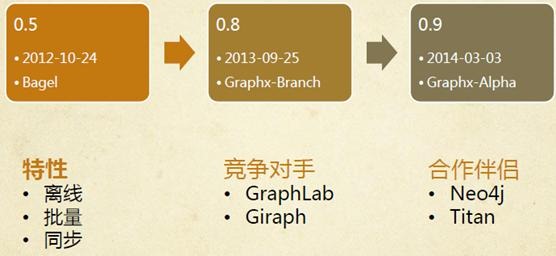 l早在0.5版本,Spark就带了一个小型的Bagel模块,提供了类似Pregel的功能。当然,这个版本还非常原始,性能和功能都比较弱,属于实验型产品。