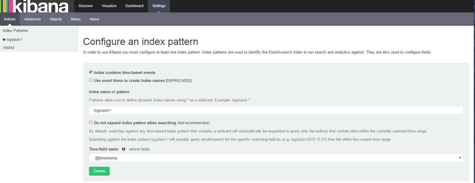 创建日志索引。Logstash 发送的数据,默认使用 logstash 前缀作为数据索引。见图 7。
