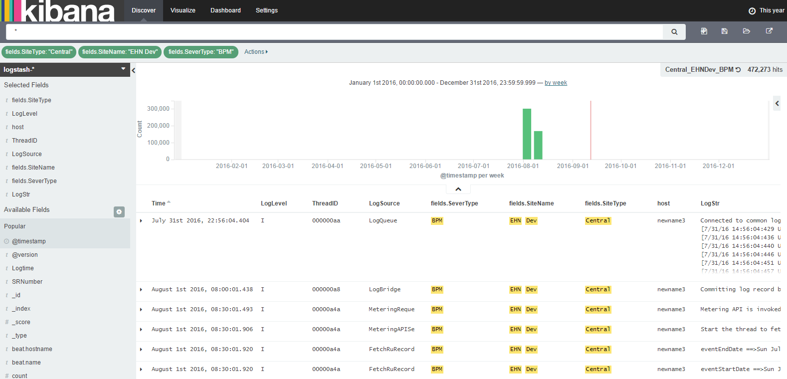 点击 Create,再选择 Discover 页面就能看见 Logstash 发送的数据了,如图 8 所示。