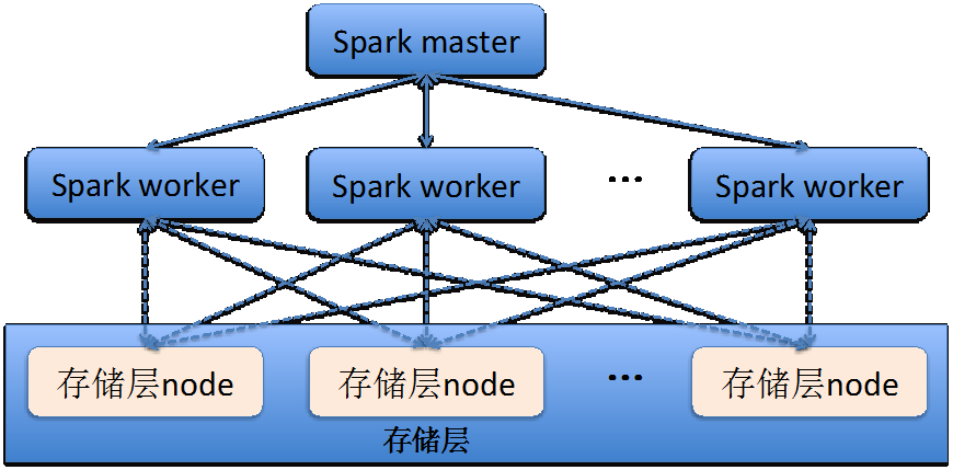 Spark master在接收到一个计算任务后,首先会与存储层做一次通讯,从存储层的访问快照或者是存储规划中,得到本次计算任务所设计的所有数据的存储情况。存储层返回给Spark