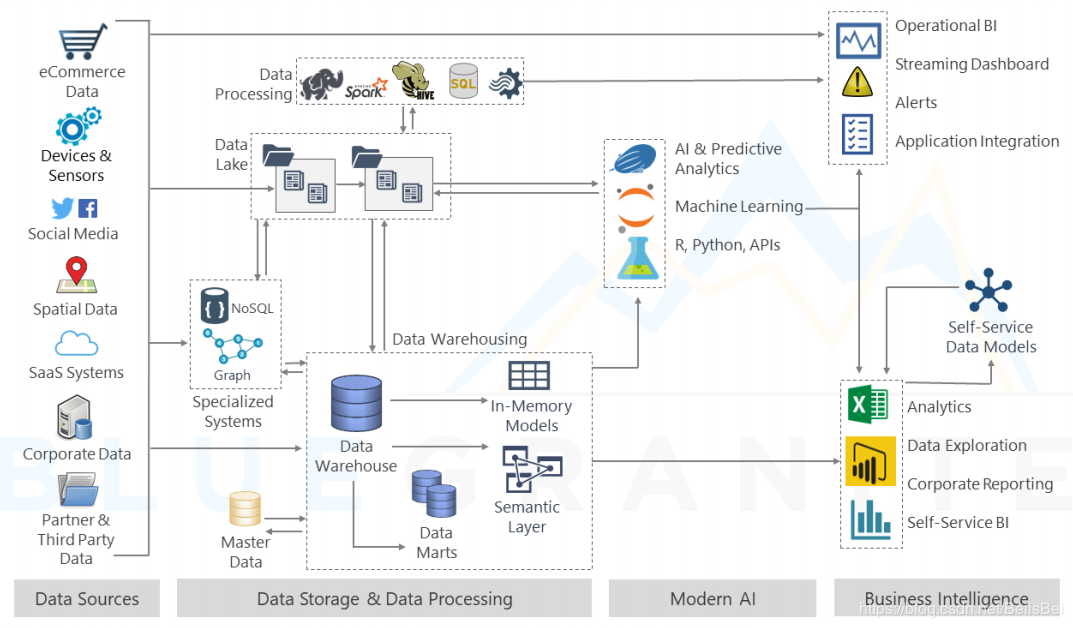 具有人工智能的高级分析:访问原始数据,创建沙箱的能力,以及重新配置的灵活性,这些使得数据湖成为了一个快速开发和使用高级分析模型的强大平台。数据湖非常适合使用机器学习和深度学习来执行各种任务,比如数据挖掘和数据分析,以及提取非结构化数据。