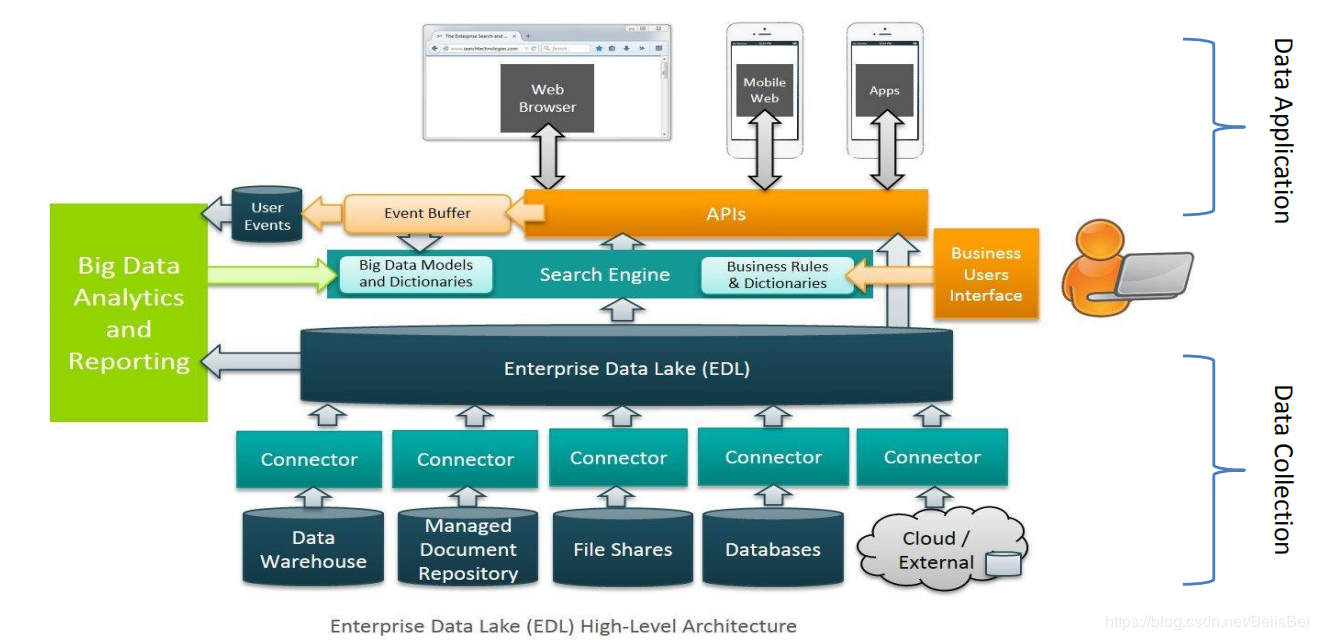 3) 数据仓库的数据进入这个池之前是预先分类的,这可以指导其后面如何进行数据的分析。但在大数据时代,这些都是素材而已,你根本不知道以后如何用它,而数据湖给后面的数据分析带来了更大的弹性。因此,这个放大数据的仓库,专家建议叫数据湖,以区别于数据仓库。