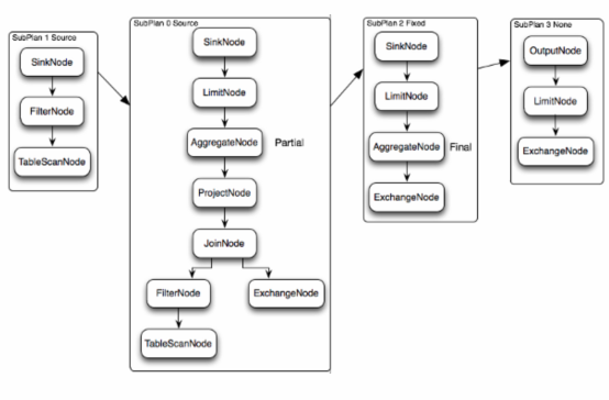 Source:表示这个SubPlan是数据源,Source类型的任务会按照数据源大小确定分配多少个节点进行执行