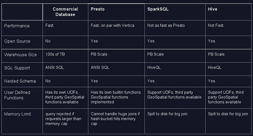 Presto 查询可合并来自多个数据源的数据进行统一分析。Presto 的目标是在可期望的响应时间内返回查询结果,Facebook